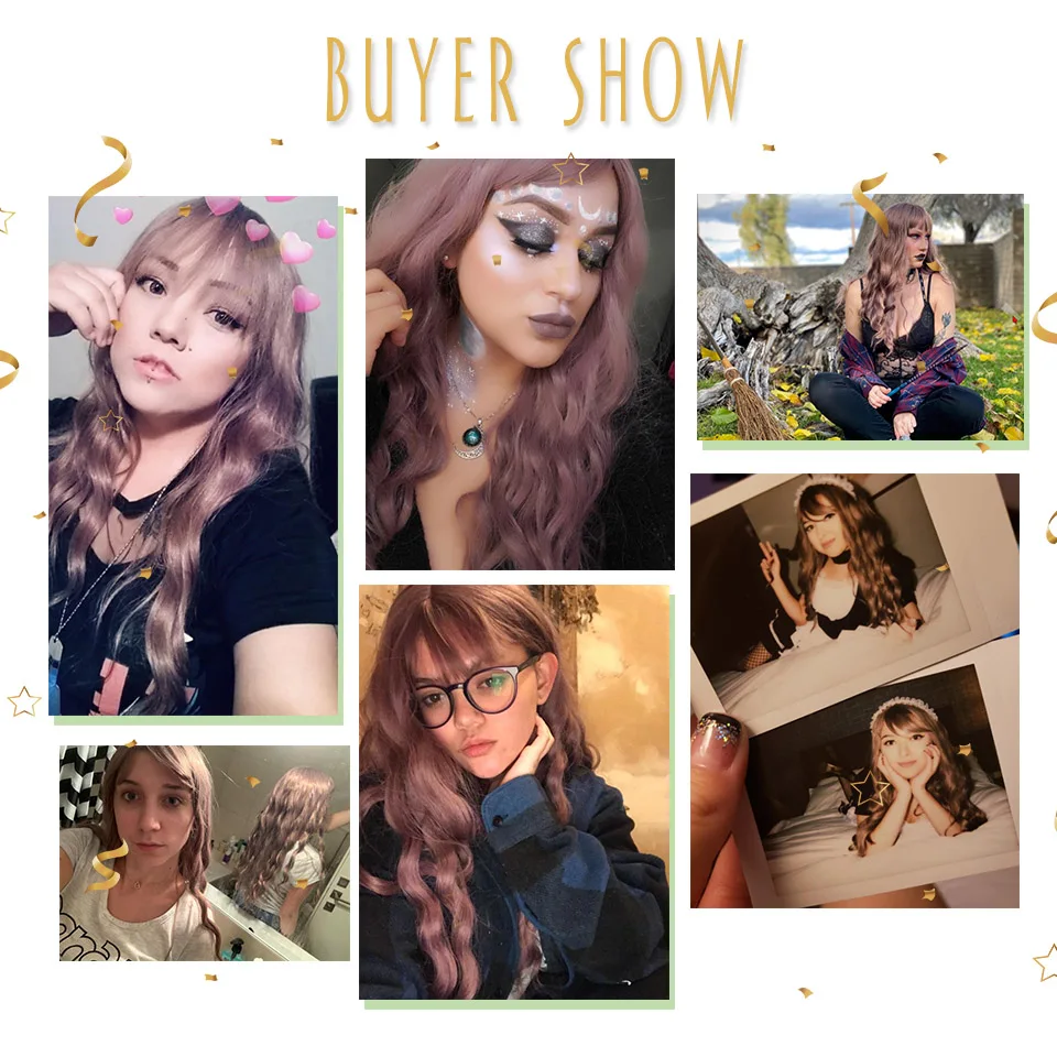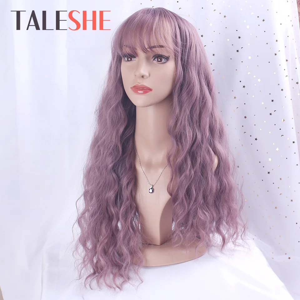 Hot Sale TALESHE Long Wavy with Air Bangs Water Wave Synthetic Wigs for Women Lolita Natural Hair Purple 26