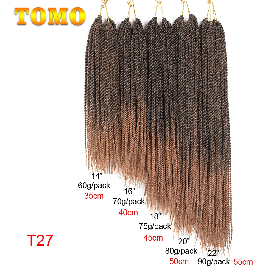 TOMO Hair 30Roots 14" 16" 18" 20" 22" Small Senegalese Twist Hair Crochet Braids Ombre Synthetic Br