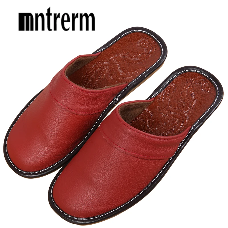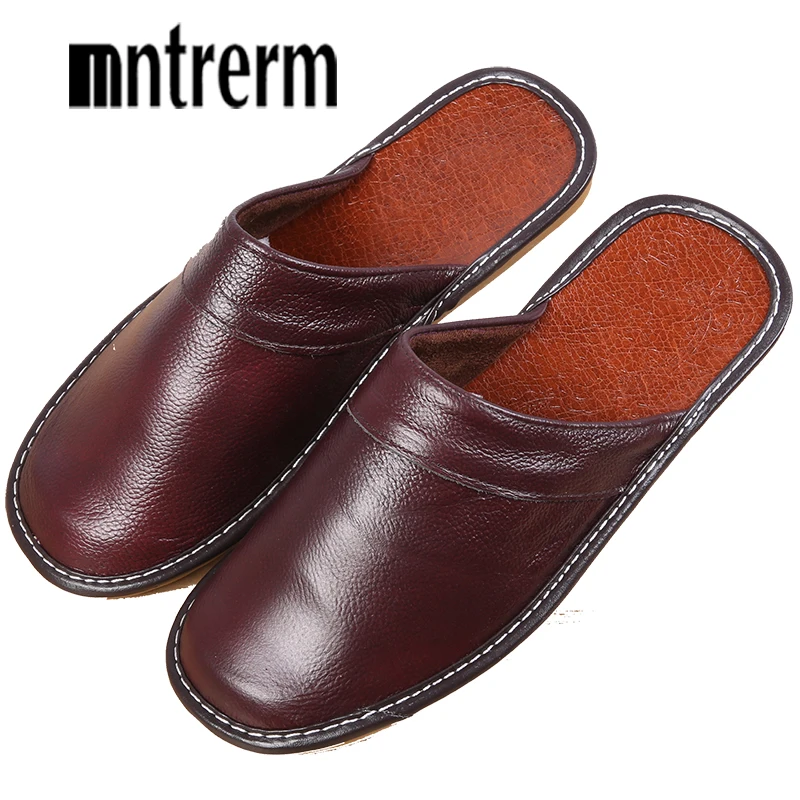 Mntrerm Men Slippers Spring And Autumn Genuine Leather Home Indoor Non - Slip Thermal Slippers 2018